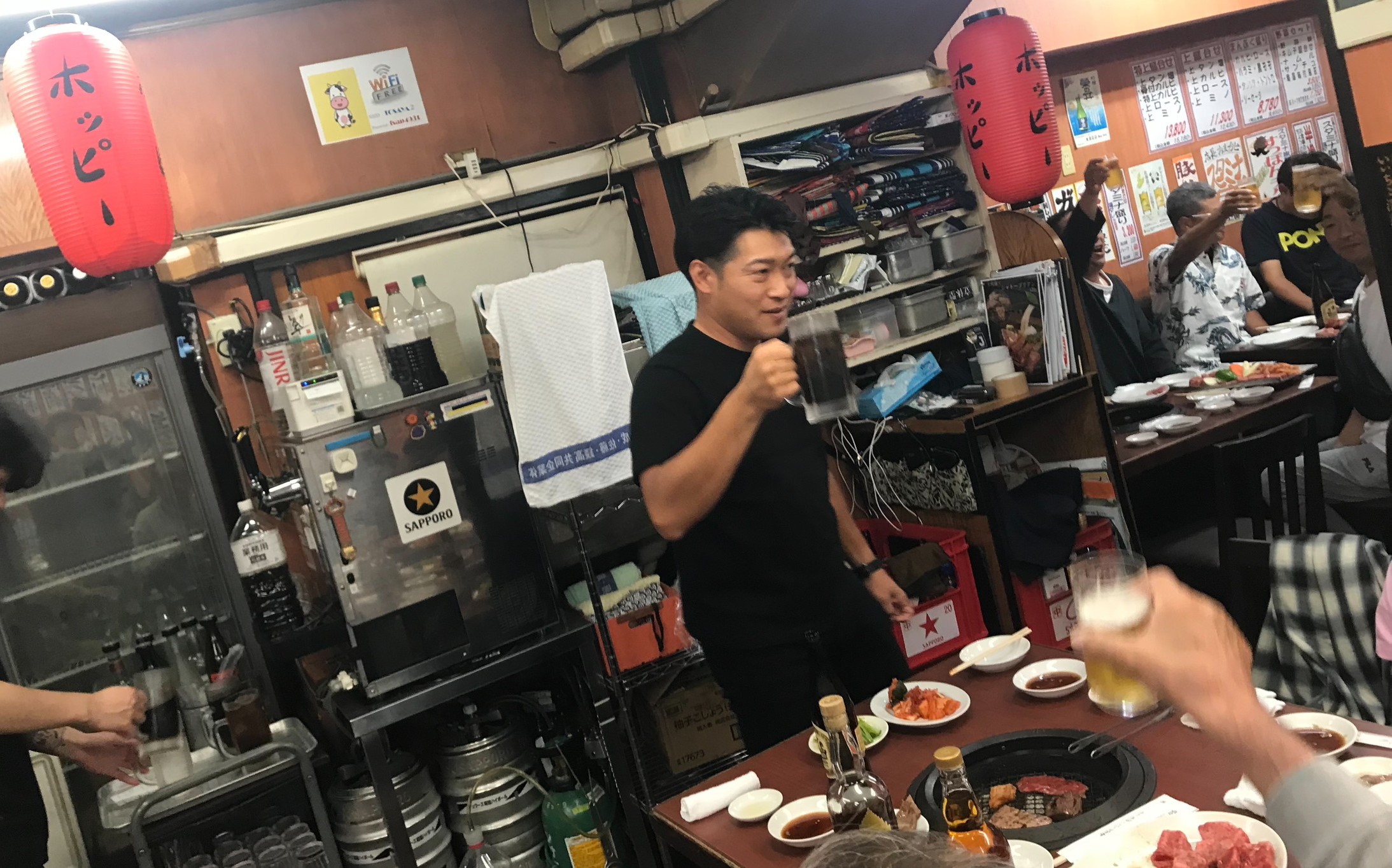 早速、乾杯に移ります。専務から「乾杯」!! 皆さんも声高らかにおーイエー!!!