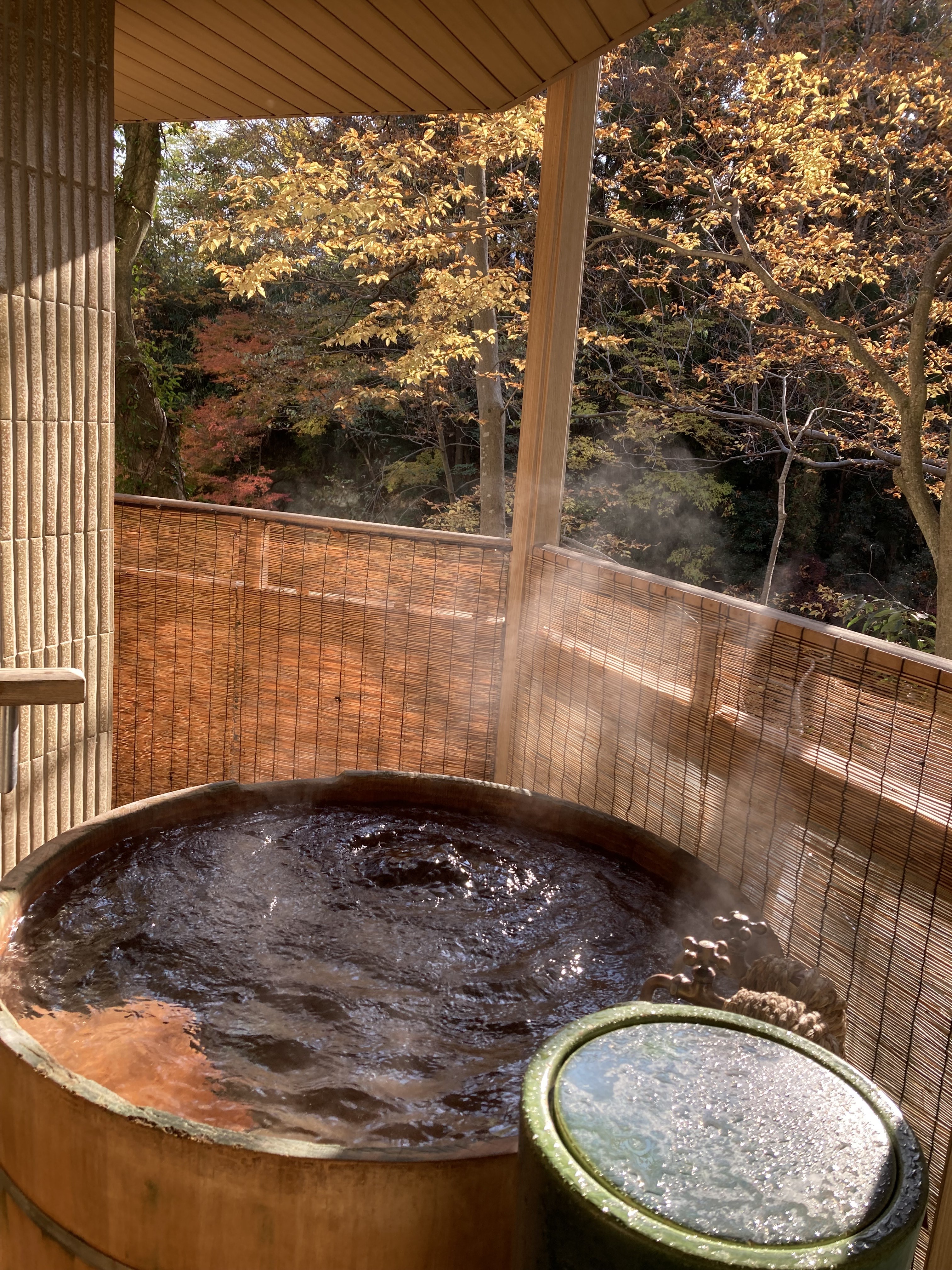 そしてベランダの丸樽のお風呂で日頃の疲れもまったりです。